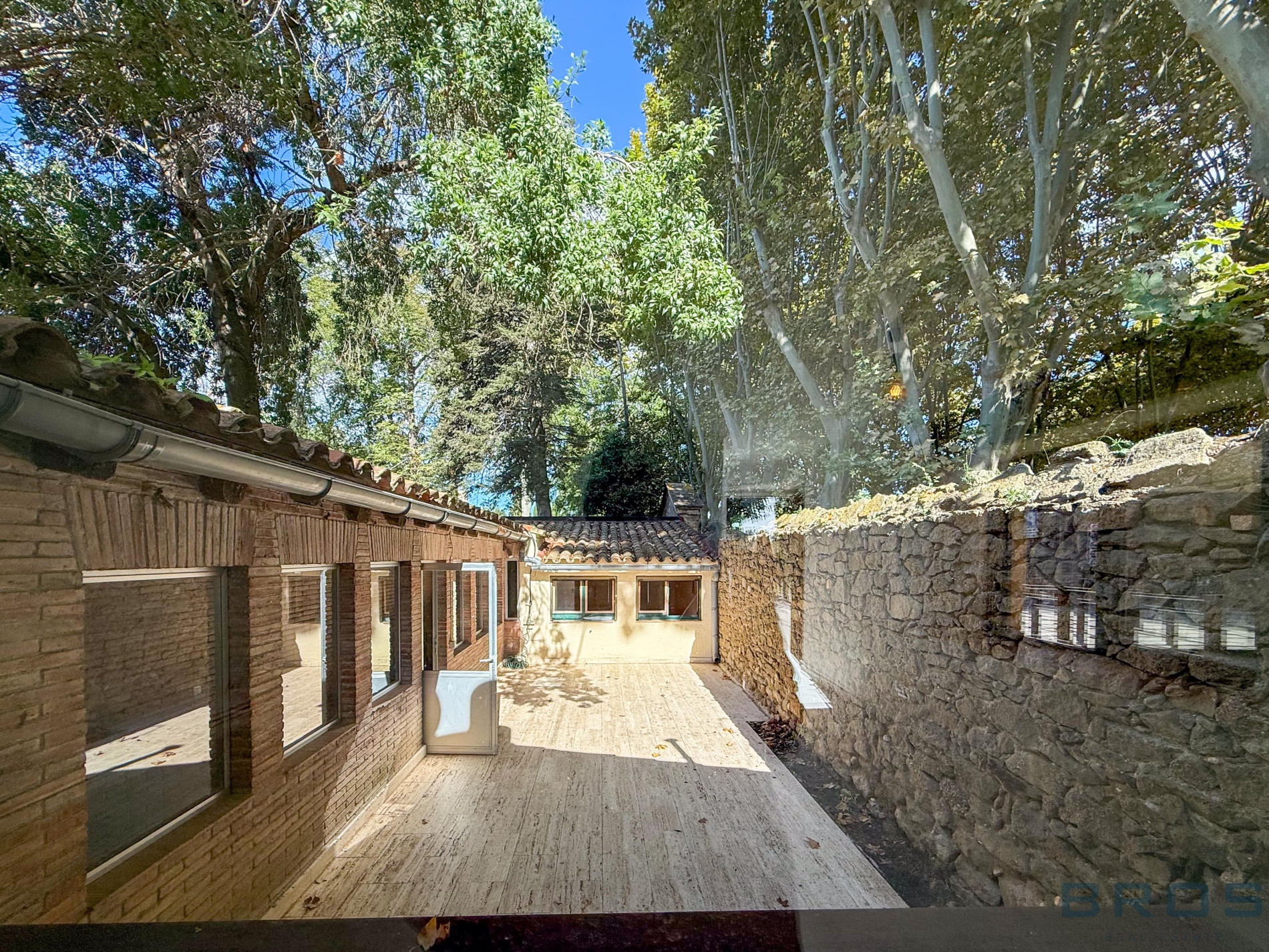 The patio is in the center of the house and all rooms are exterior.