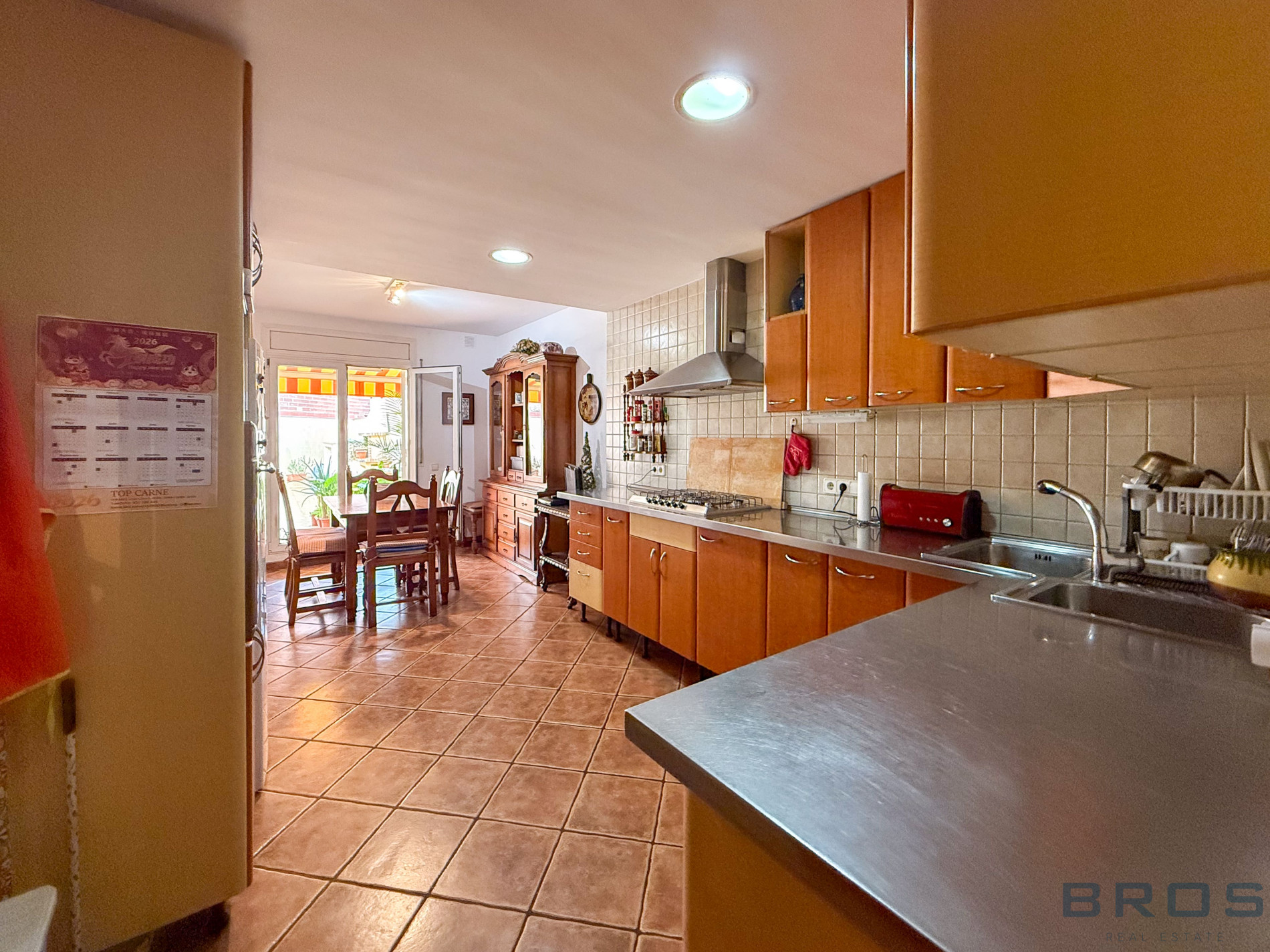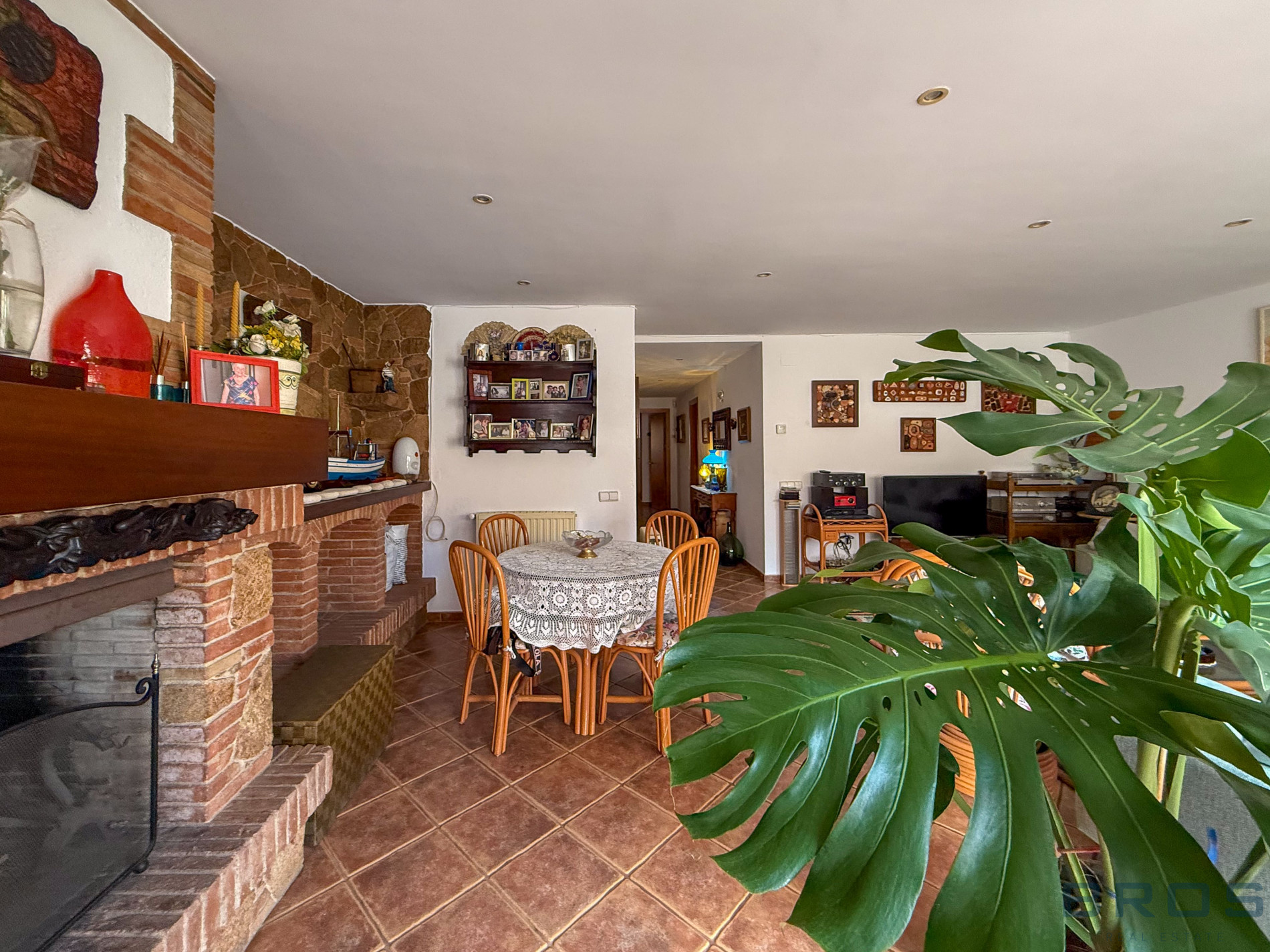 La planta primera dispone de un recibidor, un salón-comedor con chimenea y un balcón, una cocina con acceso a una gran terraza con barbacoa y toldos nuevos, una habitación doble con armarios empotrados, 1 baño completo y 1 dormitorio doble también con acceso a la gran terraza.