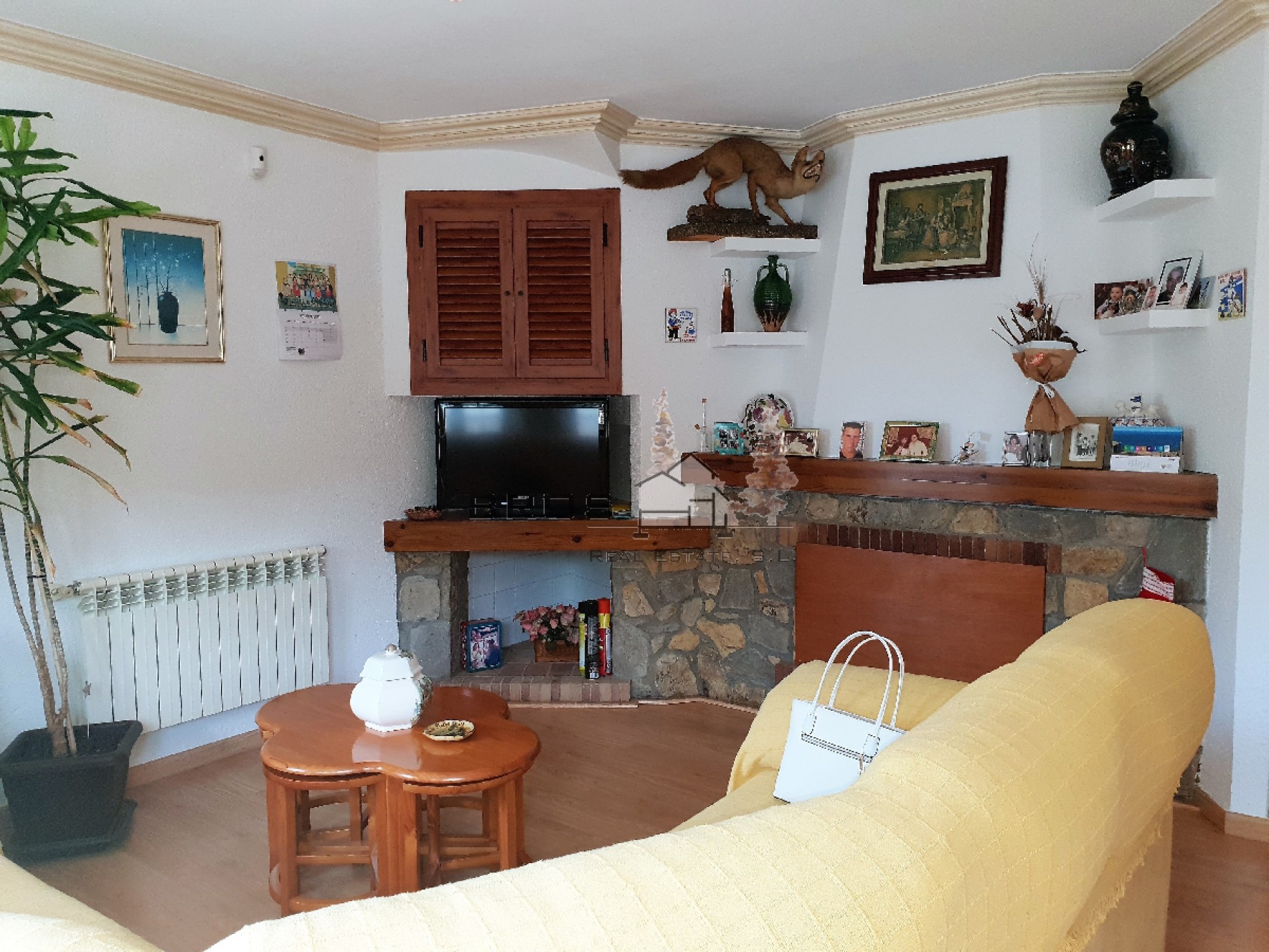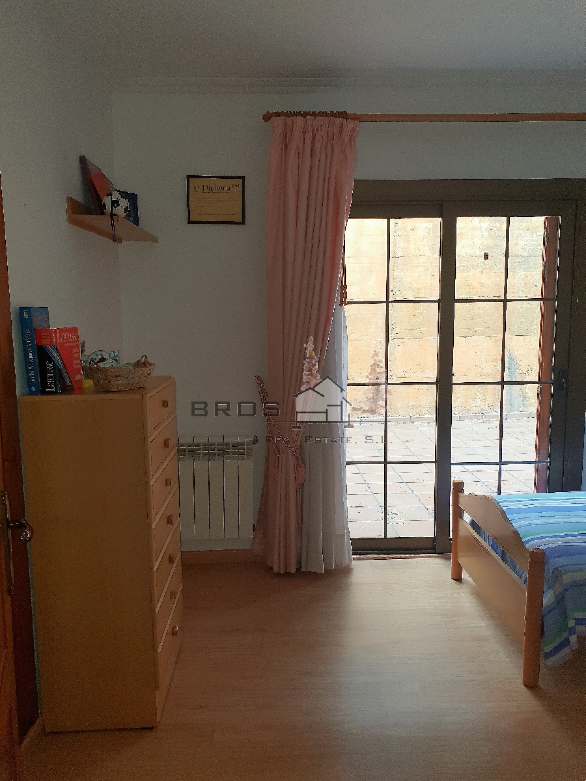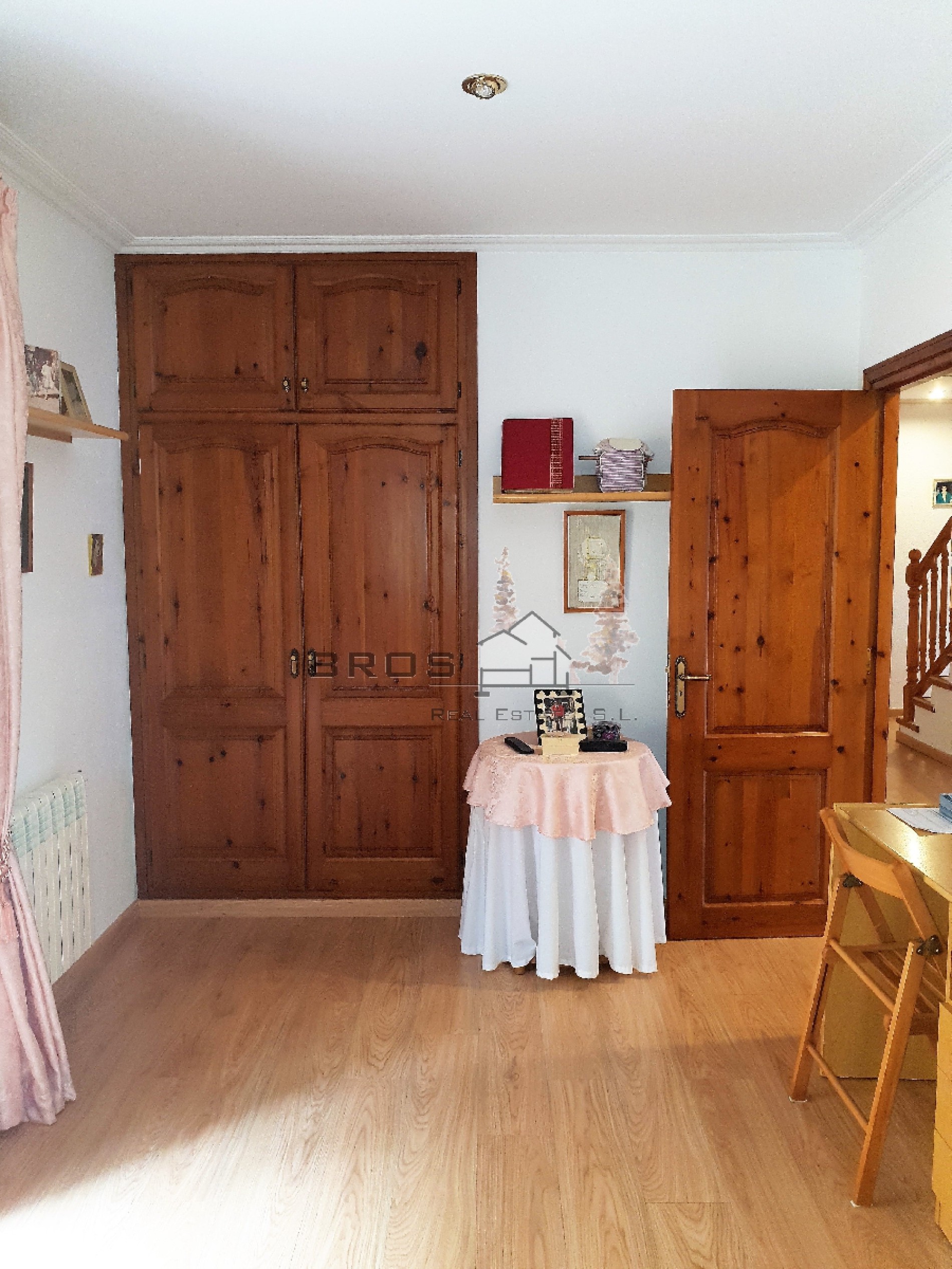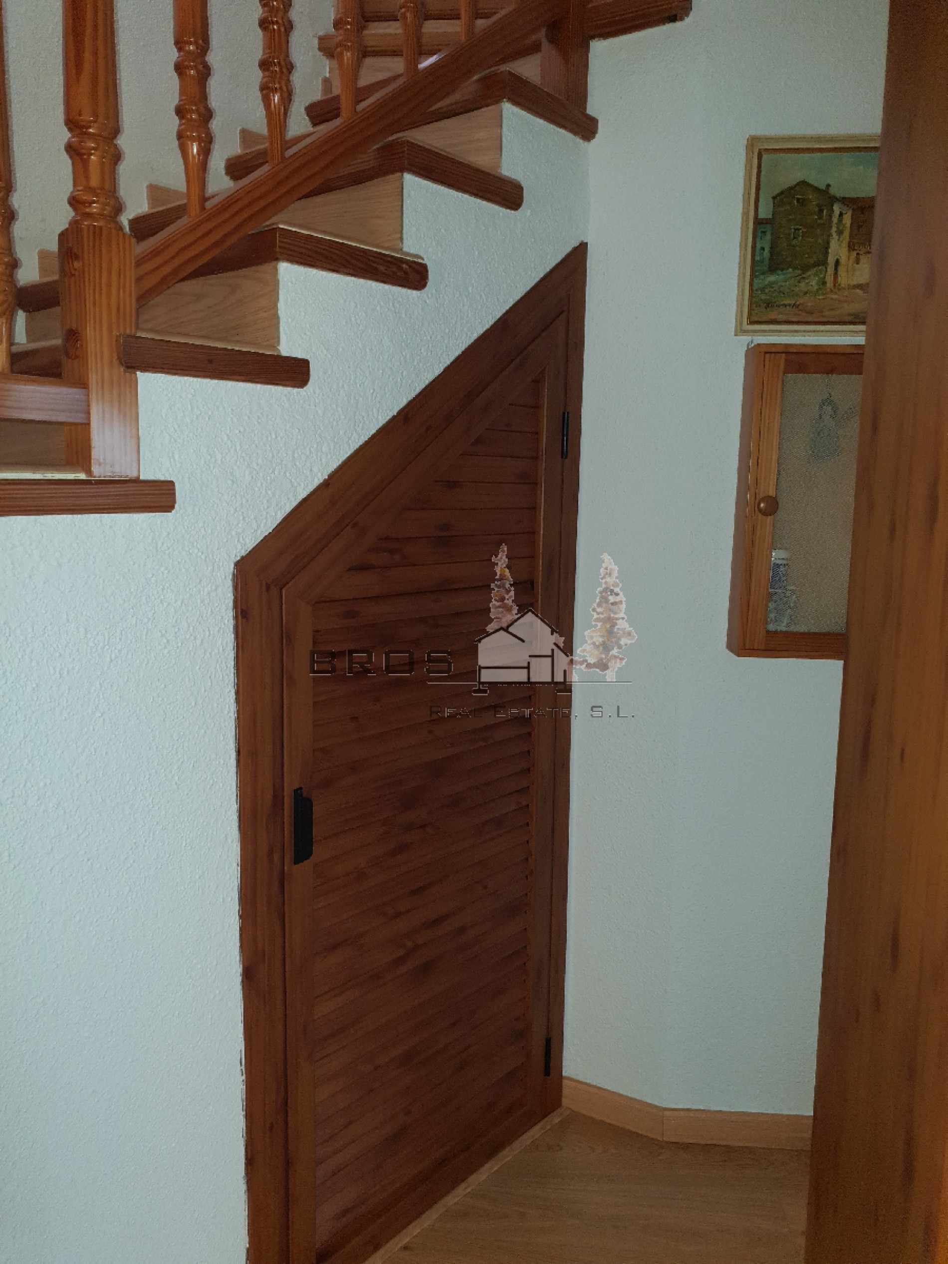 La planta principal dispone de un recibidor, un espacioso y luminoso salón-comedor con chimenea y acceso a una gran terraza con bonitas vistas, una cocina con acceso al exterior, un trastero debajo de la escalera, 3 dormitorios dobles con armarios empotrados y acceso al exterior y 1 baño completo.