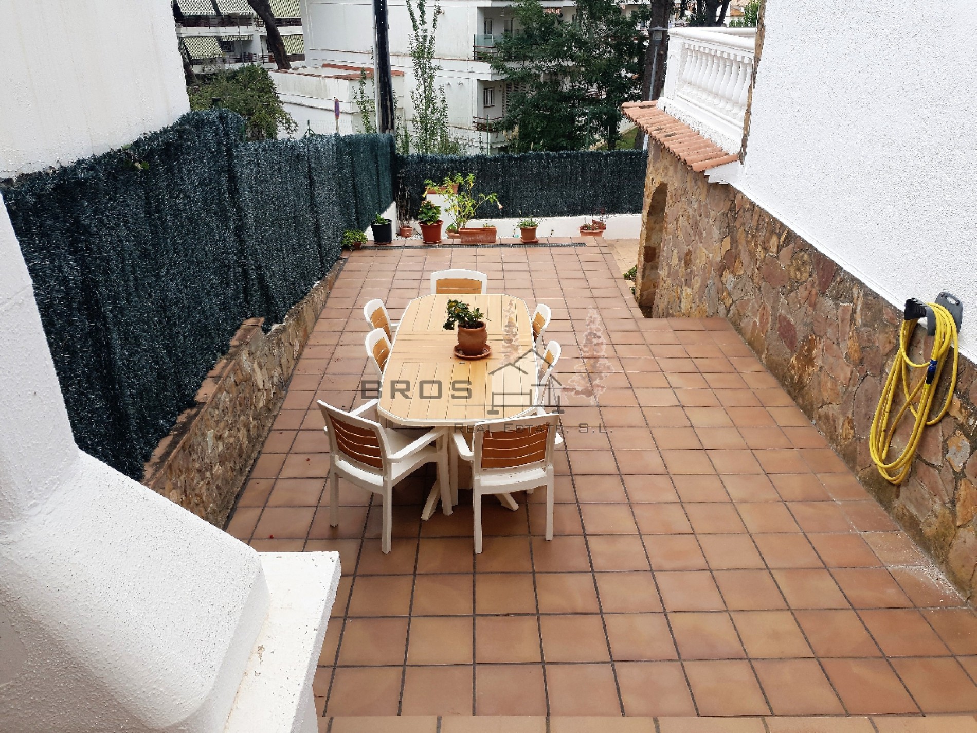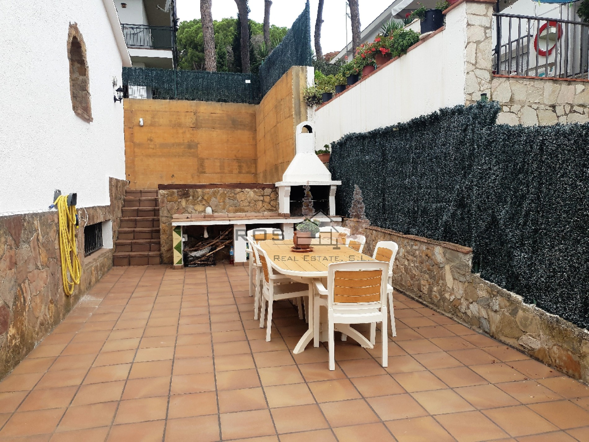 A escasos metros del centro de Platja d’Aro, chalet construido en el año 1991, tiene una superficie de 366 m2 construidos sobre una parcela de 563 m2 según catastro. Se distribuye en planta bajo rasante, planta principal y planta piso acabado en teja árabe.