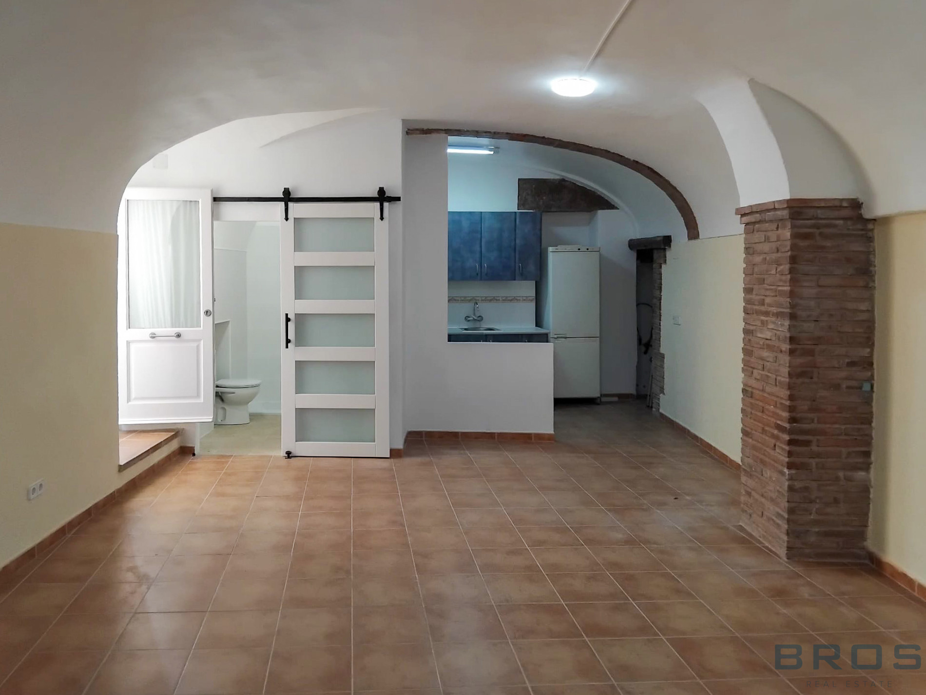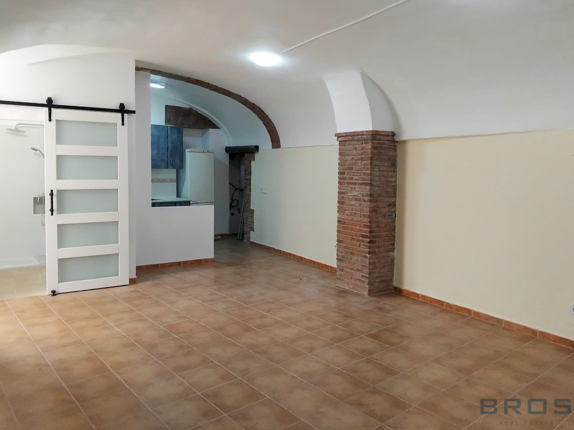Al acceder, nos recibe un gran espacio diáfano con suelos cerámicos, ideal como salón-comedor y zona de estar. La amplitud del ambiente y la estructura original contribuyen a una sensación de calidez y autenticidad.